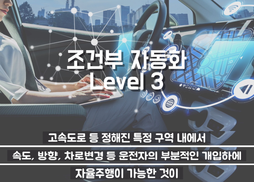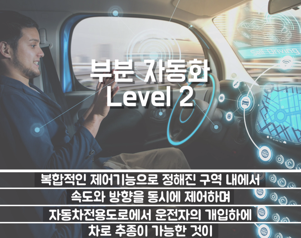 Level3, 고속도로 등 특정구역 내에서 속도, 방향, 차선변경 등 운전자의 부분적인 개입 하에 자율주행 가능