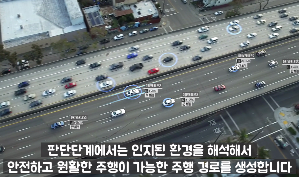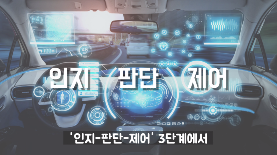 먼저 자율주행차에 대해 알아보고, 자율주행차는 인지-판단-제어 3단계로 움직입니다.