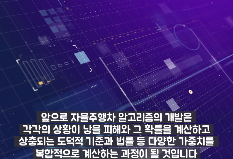 앞으로 자율주행차 알고리즘의 개발은 각각의 상황이 낳을 피해와 그 확률을 계산하고, 상반되는 도덕적 기준과 법률 등 다양한 가중치를 복합적으로 계산해 나가는 과정이 될 것입니다.