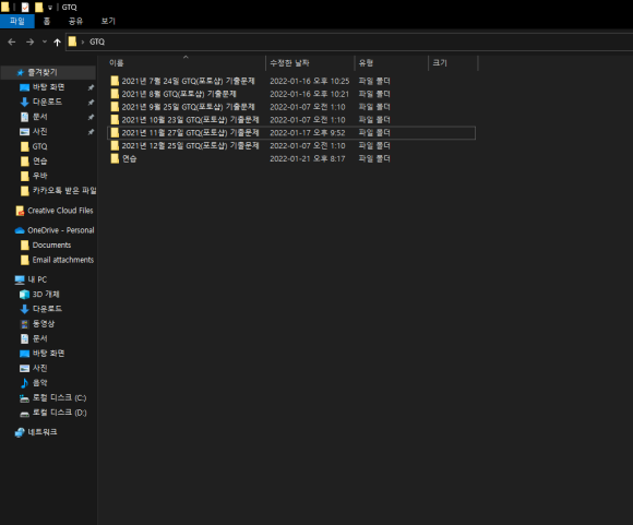 기출문제같은 경우는 KPC 홈페이지에서 GTQ 자격증 자료실에 들어가면 다양한 기출문제가 있어서 거기에서 다운받아서 공부를 했습니다.