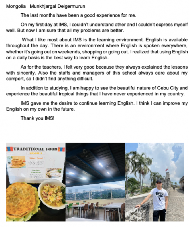 There are quite a few people who want to improve their English skills while conducting Filipino language training for the purpose of going on to overseas universities!IMS offers PATHWAY and internship programs for prestigious overseas universities, so I think we can get a lot of help.:) In addition to this, please refer to the fact that you can go to overseas universities such as the US/Canada/Australia/Singapore!:) An MOU has been signed with Andrews University, a prestigious university in the U.S., and GBC Internship Company in Canada! Also, IMS students can receive admission and scholarship benefits, so please refer to this as well~!IMS instructors! How is it organized?IMS consists of instructors with long experience and teaching skills from prestigious universities in the Philippines~! Using a strict human resource pool system, we will not only hire instructors with six applicable recruitment standards! We’re doing regular training.:) In addition, we maintain a high level of instructor level in multi-faceted evaluation~! We are working to improve the quality of classes as we provide high-quality programs under the specialized instructor system for each area.IMS consists of instructors with long experience and teaching skills from prestigious universities in the Philippines~! Using a strict human resource pool system, we will not only hire instructors with six applicable recruitment standards! We’re doing regular training.:) In addition, we maintain a high level of instructor level in multi-faceted evaluation~! We are working to improve the quality of classes as we provide high-quality programs under the specialized instructor system for each area.Before the class progresses, through the level system of 12 levels!Before the class progresses, through the level system of 12 levels!Learn about the courses offered at the IMS Language Academy!IMS Academy & KAPLAN SINGAPORE, International ESL Business English Course Family Program Power Speaking EAP (English for Academic Purpose)Learn about the courses offered at the IMS Language Academy!IMS Academy & KAPLAN SINGAPORE, International ESL Business English Course Family Program Power Speaking EAP (English for Academic Purpose)Learn about the courses offered at the IMS Language Academy!IMS Academy & KAPLAN SINGAPORE, International ESL Business English Course Family Program Power Speaking EAP (English for Academic Purpose)What kind of services are offered at language schools?What kind of services are offered at language schools?Overseas volunteer activities! You can do it at IMS!Reference! Volunteer activities are available at the IMS Language Academy.There were many people who wanted to leave a meaningful and precious time through overseas service while doing Filipino language training!If you have more than 10 applicants, IMS Language Academy offers you the opportunity to spend your language study period more fully and preciously, so please check this out in advance if you would like to live in IMS!:)Reference! Volunteer activities are available at the IMS Language Academy.There were many people who wanted to leave a meaningful and precious time through overseas service while doing Filipino language training!If you have more than 10 applicants, IMS Language Academy offers you the opportunity to spend your language study period more fully and preciously, so please check this out in advance if you would like to live in IMS!:)Reference! Volunteer activities are available at the IMS Language Academy.There were many people who wanted to leave a meaningful and precious time through overseas service while doing Filipino language training!If you have more than 10 applicants, IMS Language Academy offers you the opportunity to spend your language study period more fully and preciously, so please check this out in advance if you would like to live in IMS!:)Today, I studied what kind of language school the IMS language school is and what characteristics it has.Next time, we plan to deal with more details such as family training and adult training, so please pay attention.International students are required to study in the Philippines at the top of the domestic training procedures, and they can register as language academies at the cheapest language study fee in the country.:) If you are having difficulty visiting due to the cold weather, please feel free to contact us by phone/KakaoTalk and we will be able to respond quickly and kindly, so please don’t hesitate to contact us! Thank you very much for your interest in writing on the brushbox until the end today!With a must-study abroad, you will embark on inexpensive and fulfilling training ▼Maria Luisa, 6000 Paseo Saturtino Street, Cebu City, IMS Academy, Inc.Maria Luisa, 6000 Paseo Saturtino Street, Cebu City, IMS Academy, Inc.Maria Luisa, 6000 Paseo Saturtino Street, Cebu City, IMS Academy, Inc.