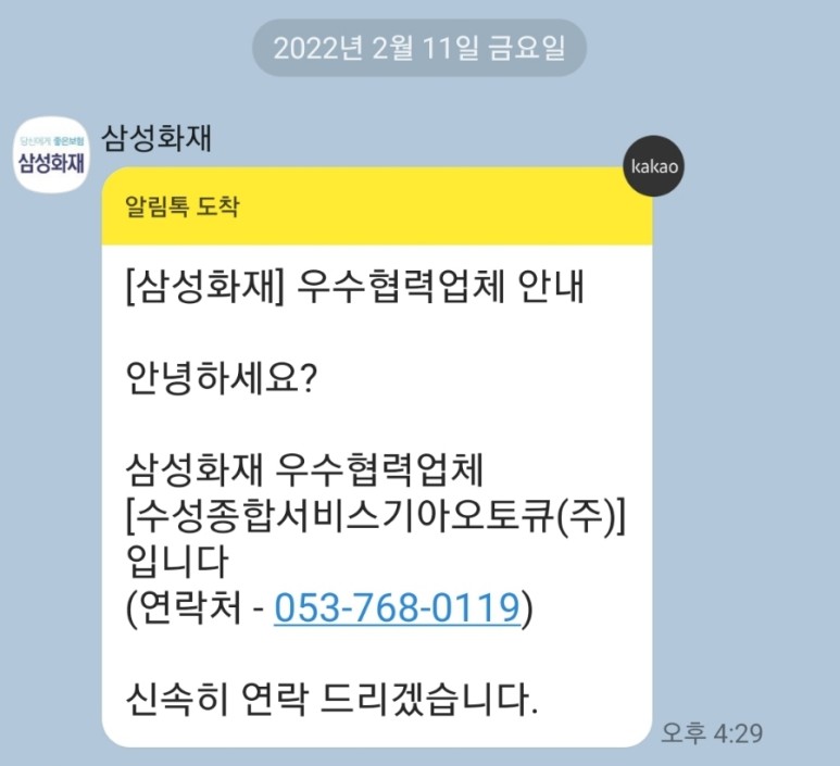 삼성화재에 대물, 자차가 다 들어 있어 신고 접수를 먼저 했습니다.