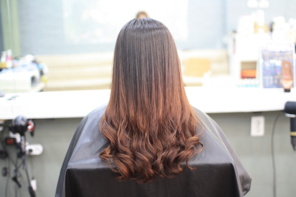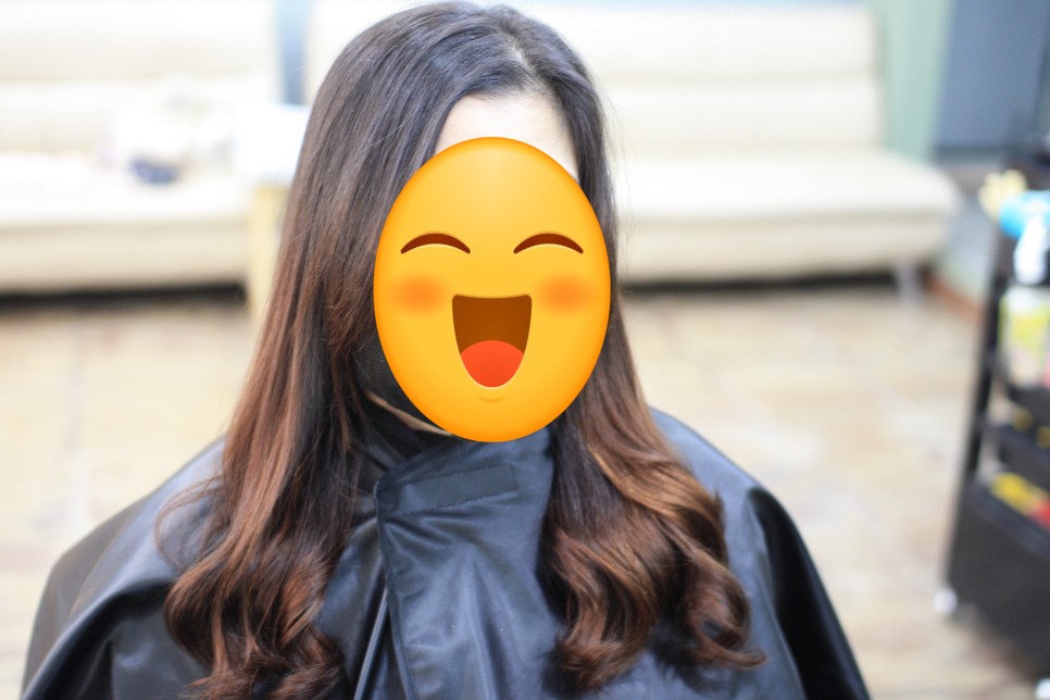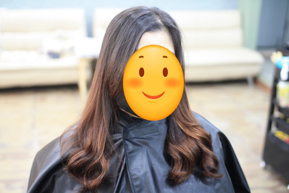 파마가 없는 생머리에 긴머리 사이드밴을 다리미로 감았기 때문에