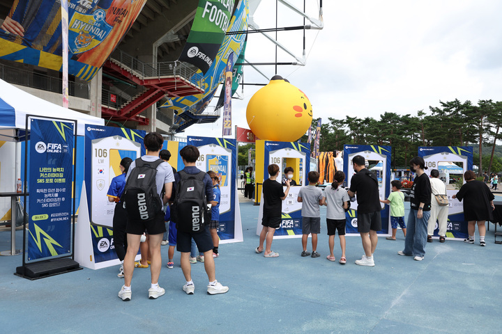 먼저 경기 시작 전 관중이 쉽게 참여할 수 있는 체험형 공간과 포토존을 준비했다. 이를 통해 실제 축구를 기반으로 한 현장 참여형 이벤트, 그리고 <FIFA 온라인 4> 콘텐츠와 연계한 이벤트를 진행해 색다른 볼거리를 제공했다.