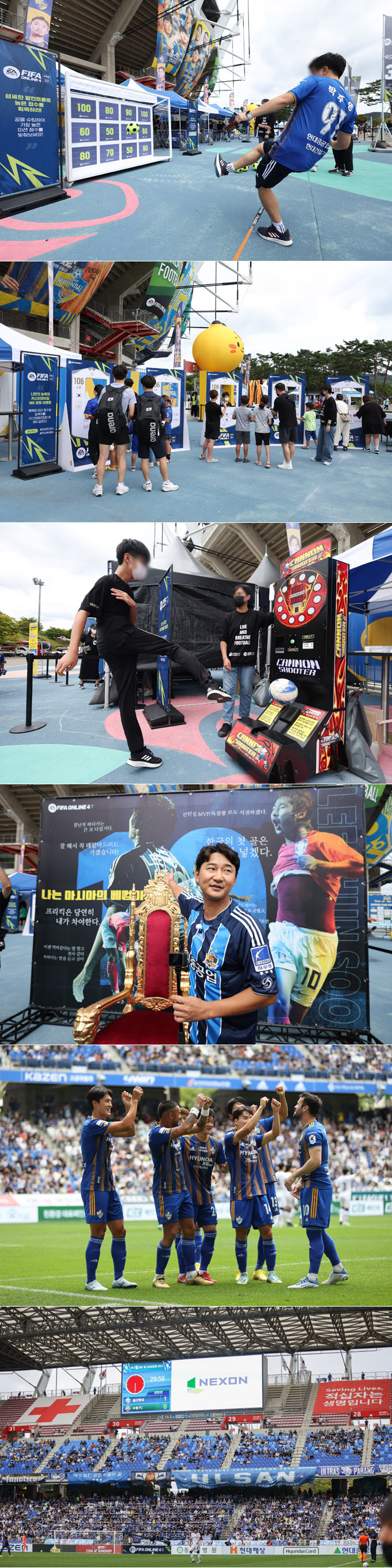 시구 행사에는 울산 현대에서 활약한 전 국가대표 이천수 선수와 <FIFA 온라인 4> 사업을 총괄하는 넥슨의 박정무 그룹장이 함께 호흡을 맞춰 웃음을 자아냈고, 경기 도중에는 득점 시 빅맨 세리머니 경기 등의 이벤트를 실시해 관중의 폭발적인 반응을 얻었다. 빅맨은 골을 넣은 동료들이 한 곳에 모여 좌우, 위아래로 동작에 맞춰 손을 흔들며 춤을 추는 <FIFA 온라인 4> 세리머니로 유저들 사이에서는 상대의 멘탈을 흔들어 무너뜨리는 세리머니로 유명하다. <FIFA 온라인 4> 현장행사와 함께한 이날 울산에는 15,161명의 관중이 경기장을 방문해 올 시즌 울산경기장 최다 관중을 기록했다.