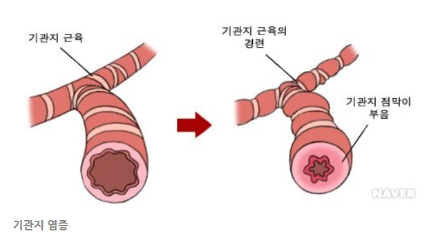 천식이란 폐로 연결되는 통로인 ‘기관지’ 질환으로 특정 유발원인 물질에 노출됐을 때 기관지의 염증으로 기관지가 심하게 좁아져 기침, 천명(숨쉴 때 씨근거리는 소리), 호흡 곤란, 가슴 답답함이 반복적으로 발생하는 질환이다.[네이버 지식백과] 천식 [asthma] (서울대병원 의학정보, 서울대학교병원