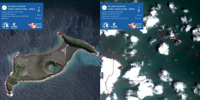 화산재 피해로 신음소리를 내는 통가 기사에 덧붙여 설명