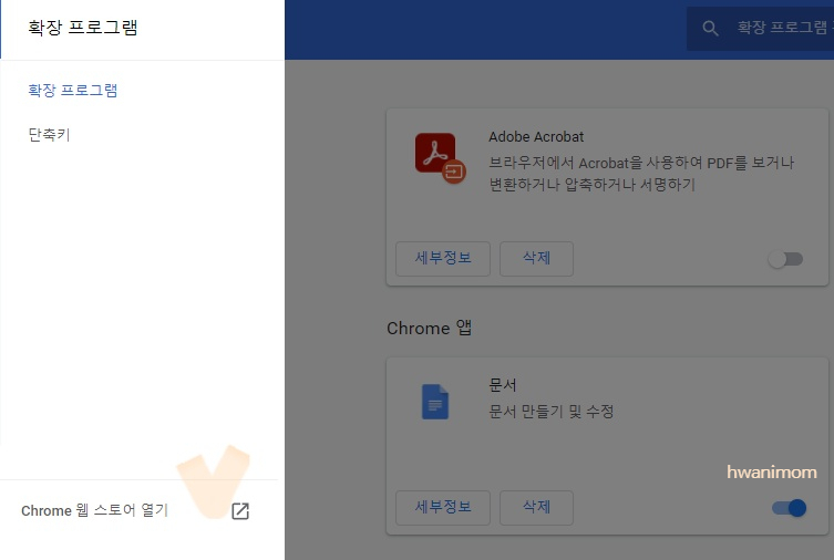 ③ 왼쪽 하단의 ‘Chrome Web 스토어 열기’ 를 클릭합니다.