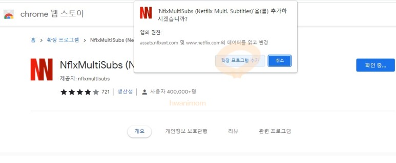 한영 통합 자막 – NflxMultiSubs 넷플릭스의 한영 통합 자막 기능 추가 방법은 간단히 다음과 같습니다. : 구글 크롬 오른쪽 상단 3개 → 도구 더 보기 → 확장 프로그램 → 크롬 업 스토어 → NflxMultiSubs 확장 프로그램 추가