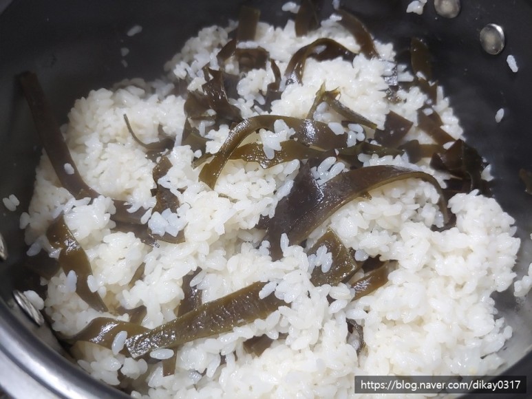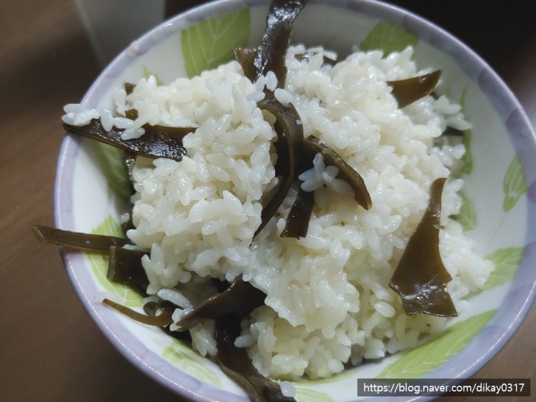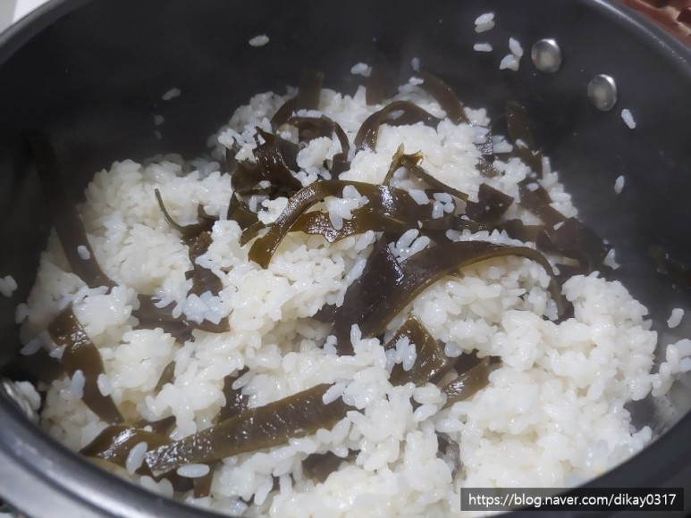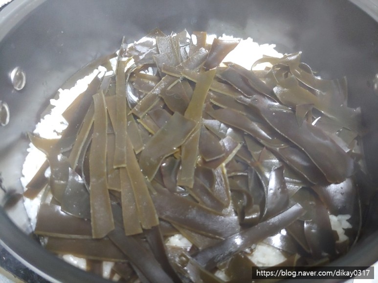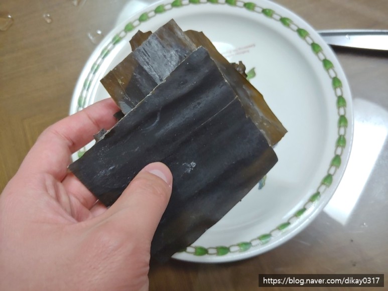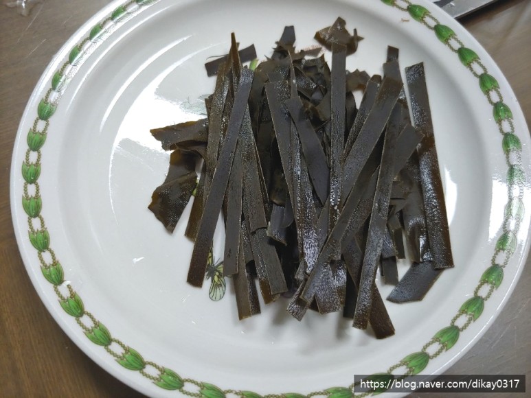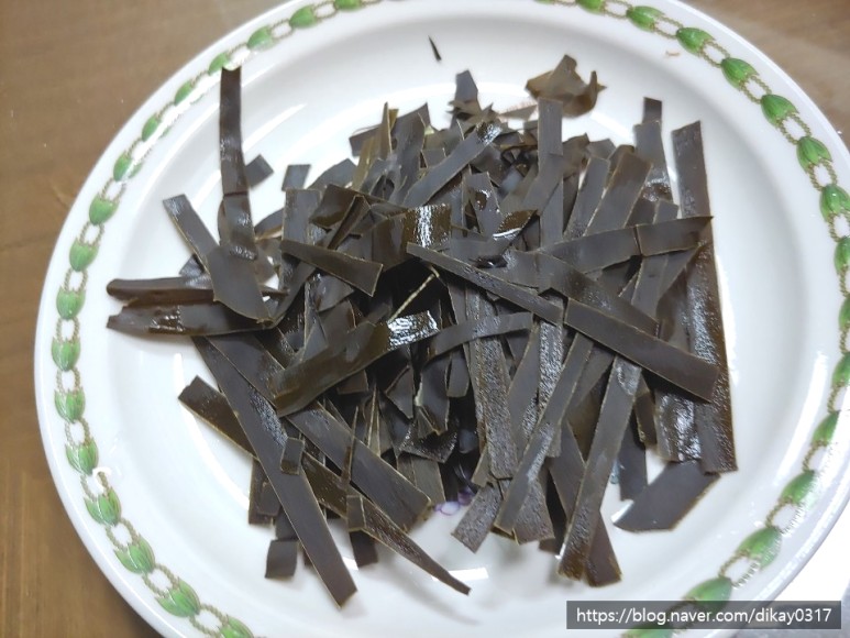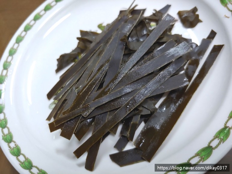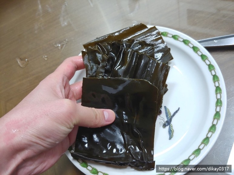 다시마를 살짝 물에 씻어서 불려서 줬어요.