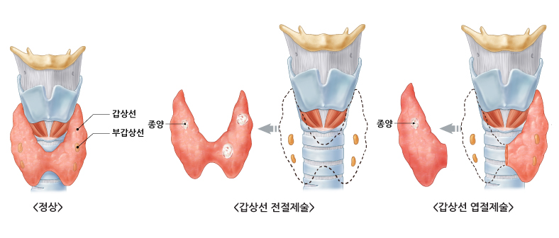 갑상선은 하나를 떼도 살아가는 데 지장이 없고 둘 다 제거할 때는 호르몬약을 먹어야 한다.