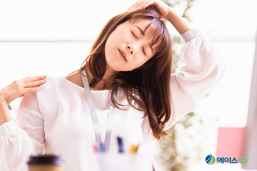 근막통증후군을 예방하기 위해서는 장시간 같은 자세로 일하는 것을 피하고 때때로 근육의 긴장을 풀어주는 스트레칭을 해주는 것이 좋습니다.허리를 펴고 앉거나 선 상태에서 오른손을 왼쪽 후두부, 귀 뒤에 대고 머리를 45도 각도로 힘을 주어 잡아당긴 후 5~10초간 유지하는 동작은 목 뒤쪽과 어깨 근육을 풀어주는 데 효과적입니다.주기적인 유산소 운동으로 혈액 순환을 개선해 나가는 것도 좋은 방법입니다.