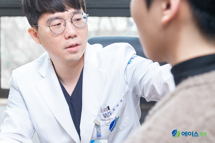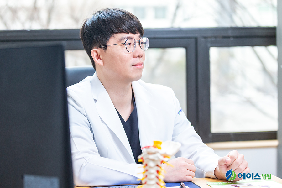 어깨에 담장을 호소하는 남성 환자의 상태를 살피며 문진하고 있는 안산에이스병원 척추센터 김태겸 원장 #근막통증후군, 목 뒤, 어깨에 자주 생기는 이유 근막통 증후군의 가장 많이 발생하는 부위는 목 뒤, 머리, 어깨 주변 등입니다. 목 뒤쪽 머리가 뻐근하고, 축 늘어지는 듯한 무거운 느낌도 듭니다.근막통증후군의 정확한 발생 메커니즘은 밝혀지지 않았으나 근육의 과도한 사용으로 인한 지속적인 수축과 이완, 외상 등으로 인해 근수축이나 주변 혈관이 압박되기 때문에 근막이 짧아지고 뻐근해지면서 통증이 발생하는 것으로 보고 있습니다. 「과잉 반복 사용」에서 알 수 있듯이, 목이나 어깨의 사용이 많은 직업군에서 근막통 증후군을 경험해 갈 것입니다.
