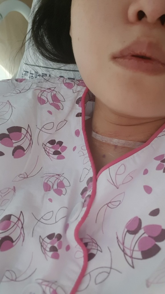 뭐.. 혼자 수술실 카트로 옮겨질 때는 무섭고 걱정스러웠는데, 참을만했고 수술 당일에는 좀 힘들었던 것 같아.출산의 고통에 비하면▲아이를 낳고 나서 건강해진다=수술 후 주의사항=회복을 위해 잠을 안 자고 심호흡하기 쉬운 기침을 하지 않는다(어차피 할 수 없다)△배액관을 달고 나오는 것이 어색하다△수술 후 다음날부터 목 운동하는 본드가 흘러나온 것은 그 정도다. 절개부위가 아닌..수술 다음날까지만 해도 목소리도 불안정하고 삼키기도 거북했지만