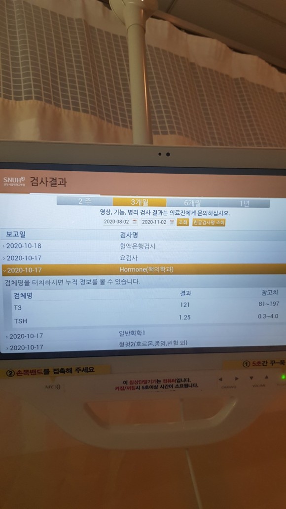 시설이 정말 좋은 스마트베드 시스템과 침대 앞 모니터로 인터넷, TV 시청, 오늘 회진 일정 내 수술과 수치 기록을 모두 볼 수 있다.그런데 너무 자동화돼서 엄마 또래라도 힘들어할까봐 걱정이야.