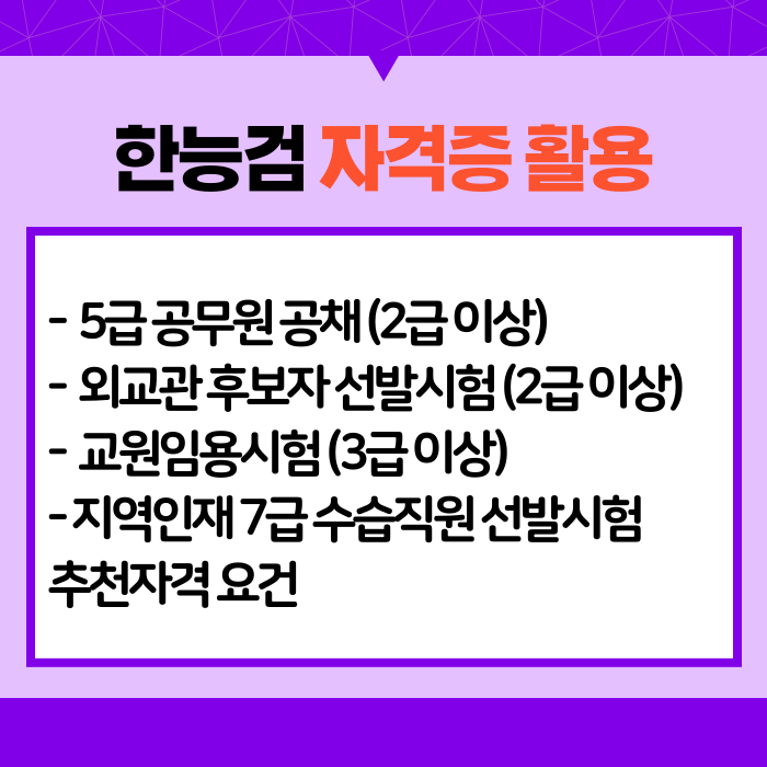 공무원시험에서 국사과목이 한국어능력검정으로 대체되는 경향이 있어 능력검정자격이 없을 경우 응시자격이 부여되지 않을 수도 있습니다.