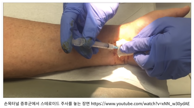 ‘손목터널증후군으로 스테로이드 주사를 맞는 장면’ 이 사진 설명을 보면 내가 아주 교과서적인 진료를 받았다는 생각이 든다.