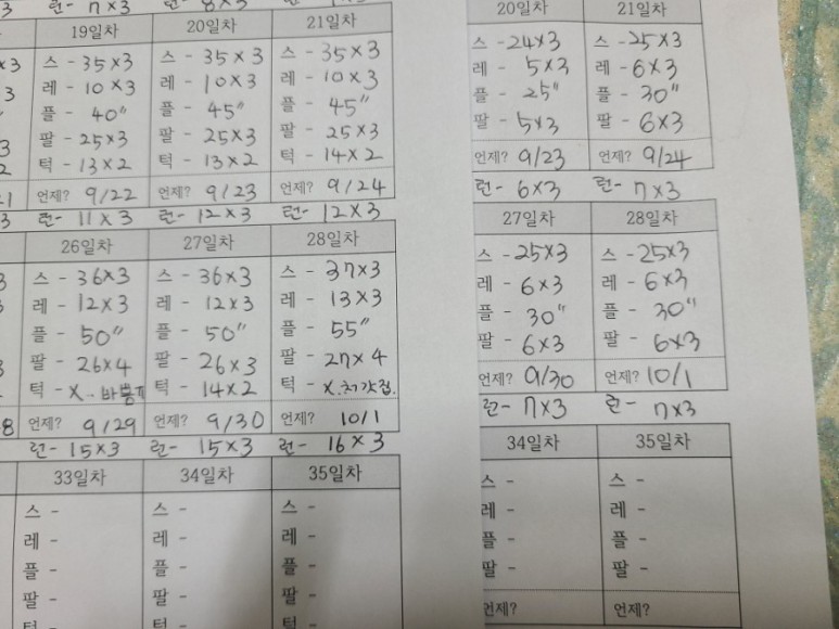 그렇게 시작된 운동 아이들을 재워놓고 밖에 나가서 운동을 시작했는데 소란이가 이러고 있는 걸 장모가 보더니 재미있다고 해서 여미가 자는 방으로 가서 운동을 했다.ㅋ조금 소화는 됐지만 여전히 배는 불러… 그래서 그런지 운동이 더 힘들어ㅜㅜ(눈물) 스쿼트랑 런지를 하다가 다리가 끊어질 것 같아. 너무 힘들어서 중간에 한번 멈췄어. 소란이는 런지마에서 다시 분비물을ㅋㅋㅋ 하루 1개의 머신 작동ㅋㅋㅋ 그리고는 나에게 블로그에서 너무 많이 웃지 말라고 했어.시간적으로는 소란운동을 다 끝냈어야 하는데 갑자기 동영상 소리가 커져서 읽기를 깼다. 갑자기 재우고 뭐하냐고 겨우 팔굽혀펴기를 했어… 이 차식아?놀았네, 하아 저거는 진짜… 하여튼 나도 운동을 계속했어하필이면 오늘 개수 올리는 날이라서……. 더 힘들다. 푸시업 하면 팔이 빠지는 느낌… 저려.심지어 턱걸이도 안 하니까4세트… ㅜㅜ운동은 힘들어…