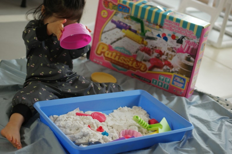 밀가루에 베이비 오일을 섞어 문샌드로 촉촉한 모래를 만들어 보았습니다. 초간단한 방법으로 아이들과 밀가루를 이용한 촉촉한 모래놀이를 할 수 있습니다.