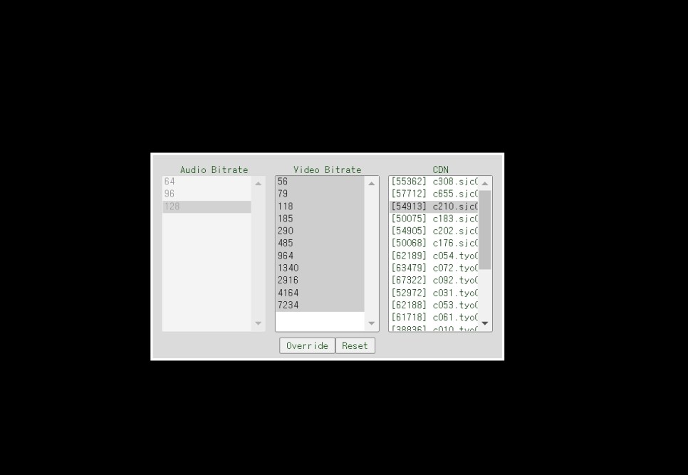 그러면 컨트롤+알토+시프트+S버튼을 누르면 위와 같이 화질 설정 변경이 나타납니다. 예전에는 넷플릭스 자체가 지원했지만 언제부터인가 없어졌어요. 저기서 비디오 비트레이트 젤이 높은 것을 클릭하여 Override를 누르면 됩니다.