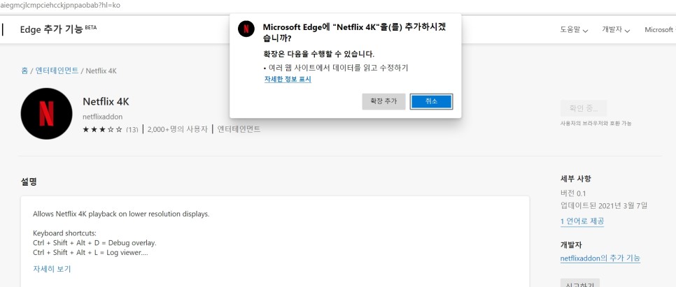 넷플릭스 4K-Microsoft Edge Addons
