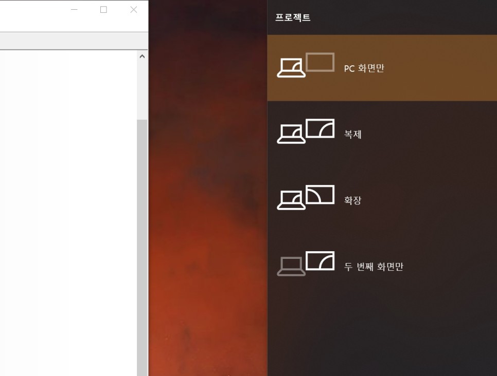 키보드 윈도우 + P버튼을 누르고 세번째 확장버튼을 누르세요.