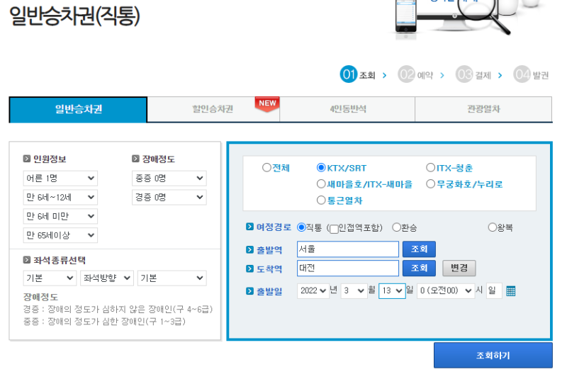 만 25~35세면 힘내라 청춘티켓을 사고 할인을 받는 나는 만 26세이므로 힘내라 청춘에게 할인이 가능하다 이 역시 홈페이지에서 인증 필수(한 번만 하면 된다) 승차권 예매 시 할인 승차권 예매에 들어가 힘내라 청춘 선택 후 노선, 날짜를 선택하면